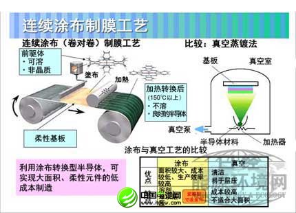 此前作為有機薄膜太陽能電池的制造方法,一般采用的是“真空蒸鍍法”。真空蒸鍍法的缺點在于,由于需要大型制造裝置,因此生產成本較高,而且難以實現較大的面積。
