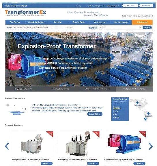 日前,中電電氣集團變壓器海外營銷平臺(www.transformerex.com)正式上線,中電電氣在努力開發國內市場的同時,將嘗試進一步開拓海外市場。在目前國內變壓器行業產能過剩的情況下,走出國門參與市場競爭,不但可以為公司提供新的市場機遇和營銷渠道,提高公司市場競爭能力,更可提升公司的整體水平和國際影響力。