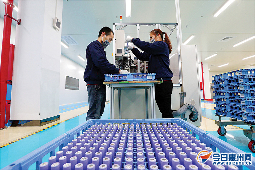 億緯鋰能高性能鋰離子動力電池項目全自動生產線試產。本報記者黃俊琦 攝