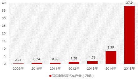 2009年以來(lái),我國(guó)新能源汽車(chē)的產(chǎn)量連年上升,帶動(dòng)了動(dòng)力電池行業(yè)的飛速發(fā)展。據(jù)工信部數(shù)據(jù)顯示,2015年我國(guó)生產(chǎn)新能源汽車(chē)37.90萬(wàn)輛,同比增長(zhǎng)4倍。其中純電動(dòng)乘用車(chē)生產(chǎn)29.07萬(wàn)輛,插電式混合動(dòng)力乘用車(chē)生產(chǎn)8.82萬(wàn)輛,較2014年增長(zhǎng)均超過(guò)3倍。
