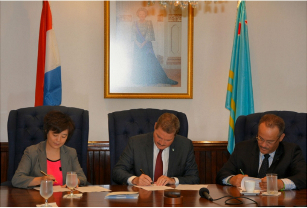 11日,阿魯巴總理邁克·埃曼,財政部部長邁克·梅薩,阿魯巴Utilities Aruba NV運營總監(jiān)弗蘭克·赫沃茲與比亞迪美國分公司總裁李柯簽訂合作諒解備忘錄。阿魯巴計劃運用比亞迪的綠色科技在2020年前實現(xiàn)成為“零排放”國家的雄偉目標。