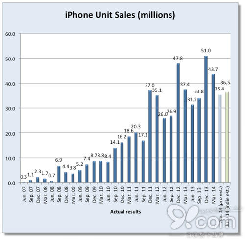 如果蘋果宣布 iPhone 銷量在3500萬左右,這意味著同比增長達到了15%。去年的第三財政季度報告上,蘋果宣布 iPhone 銷售年增長率為20%,而 iPhone 總銷量為3120萬。新款 iPhone 將于今年秋季發布,相信這是 iPhone 歷史上最重大的改變。蘋果將于7月22日,下周二舉行第三財政季度收入報告大會。