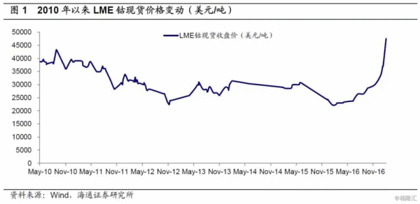 這種預期在過去的一年中已經令鈷價在倫敦交易中漲了一倍多。根據湯森路透的數據,自2015年底以來,鈷價格漲幅超過230%。
