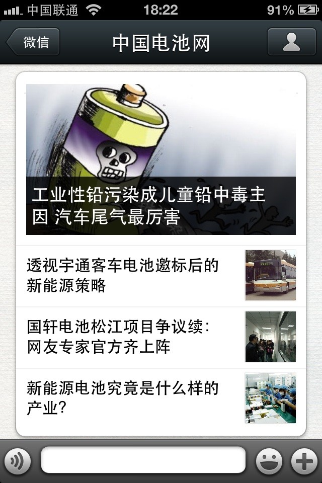 中國電池網(wǎng)的微信(微號:mybattery)已運(yùn)行有6個月了,半年來機(jī)構(gòu)、企業(yè)用戶增加到近兩千,個人用戶也達(dá)到一千多,相比于動輒上萬、十幾萬的微號來說,或許微不足道,但對于中國電池網(wǎng)來說卻是彌足珍貴,這些關(guān)注我們的用戶95%來自電池行業(yè)上中下游、券商機(jī)構(gòu)、VC/PE、能源媒體、國外客戶,是真實(shí)的人、熟悉的人!專業(yè)度高、粘性強(qiáng)、互動性高。甚至有用戶發(fā)來微信,一天不看覺得少了點(diǎn)什么。是的,小微非常榮幸為大家服務(wù),并贏得信任和尊重。小微從中國電池網(wǎng)網(wǎng)站上精選內(nèi)容推送(有不少是獨(dú)家文章),不求最熱但求最有看頭。