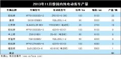 2013年11月份國內(nèi)純電動客車產(chǎn)量統(tǒng)計分析