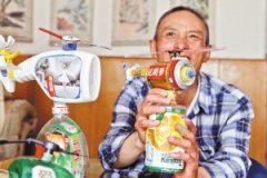 昆明退休老人用廢電池和廢拉罐造“直升機”