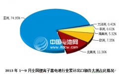 2013年1-10月,全國電池行業(yè)累計完成主營業(yè)務收入3,296.30億元,同比增長10.52%。其中:3月份完成主營業(yè)務收入367.02億元,同比增長13.57%;6月份完成主營業(yè)務收入322.87億元,同比增長27.26%;9月份...