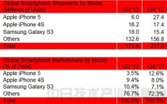 2012年Q4:iPhone5出貨超Galaxy S III重登榜首