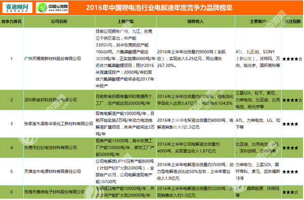 • 2016年中國鋰電池行業(yè)電解液年度競爭力品牌榜單 日期:2016-11-16 15:44:49 點擊:2524 好評:0