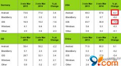 相比之下,蘋果的iOS卻下滑了7.8%,市場占有量縮減至35.9%;排在第三的是微軟的操作系統Windows Phone,其市場份額為5.3%,下降幅度為0.3。...