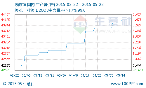 本周國內工業(yè)級碳酸鋰價格持穩(wěn) 徘徊44000元/噸