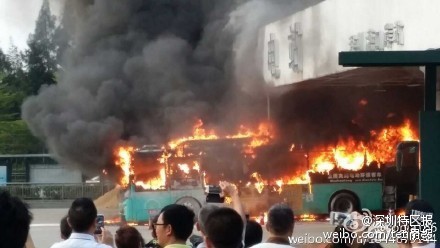 深圳一輛五洲龍電動大巴充電時電池燃燒爆炸