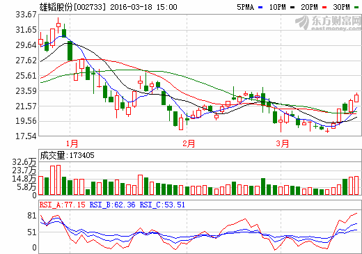 雄韜股份(002733)23日晚間發(fā)布業(yè)績快報,公司2015年實現(xiàn)營業(yè)收入24.18億元,同比增長22.39%;凈利潤1.34億元,同比增長36.37%,每股收益0.44元。...
