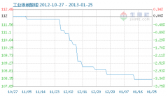 1月25日工業(yè)級碳酸鋰商品指數(shù)為108.28,與昨日持平,較周期內最高點112.10點(2012-11-04)下降了3.41%,較2012年01月05日最低點98.94點上漲了9.44%。 (注:周期指2011-09-01至今) 工業(yè)級碳酸鋰商品指數(shù)自2012-11-4起,82天陸續(xù)下降了3.408%。...